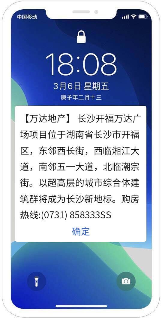 閃信群發直達用戶手機屏幕、實時彈屏顯示、無須層層點擊,讓每一條閃信群發都能被看見!閃信群發適用于緊急通知、緊急提醒、限時活動、限時促銷、等符合法律規定的閃信群發內容。